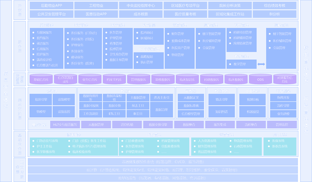 ● 集成化:医院信息化建设肯定是由众多不同的系统组建而成,但这些系统必须进行统一的集成,不能出现信息孤岛现象。